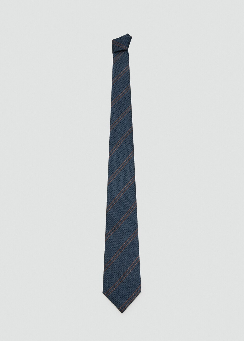 100% soie. Design à rayures bicolores. 6 cm de large.