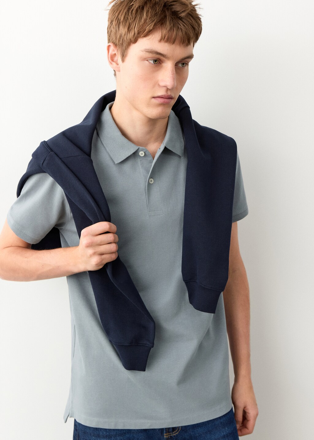 Tissu 100% coton. Coupe droite. Col polo avec fermeture à boutons. Manche courte.
