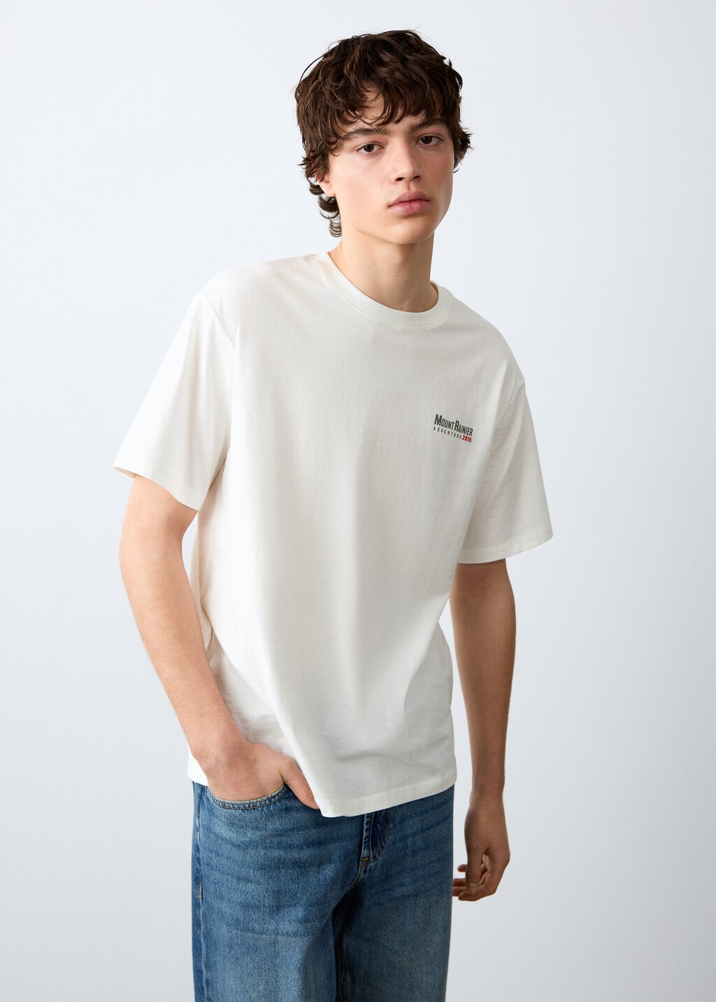 Tissu 100% coton. Design droit. Motif imprimé. Imprimé sur le devant. Motif imprimé au dos. Col rond. Manche courte.