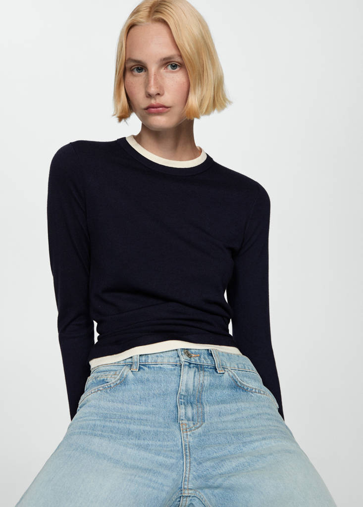 Fine-knit sweater with contrasting trimsCurrent price [MDL 699.00 ]MDL 699.00Select a colourDark NavySelect your sizeXXSXSSMLXLXXL1XL2XL3XL4XLDimensionsAdd to WishlistSee lookFree delivery to storeFine knit fabric. Straight design. Round neck. Long sleeves. Contrasting trim finish. Available PlusDetails, composition and careStore availability