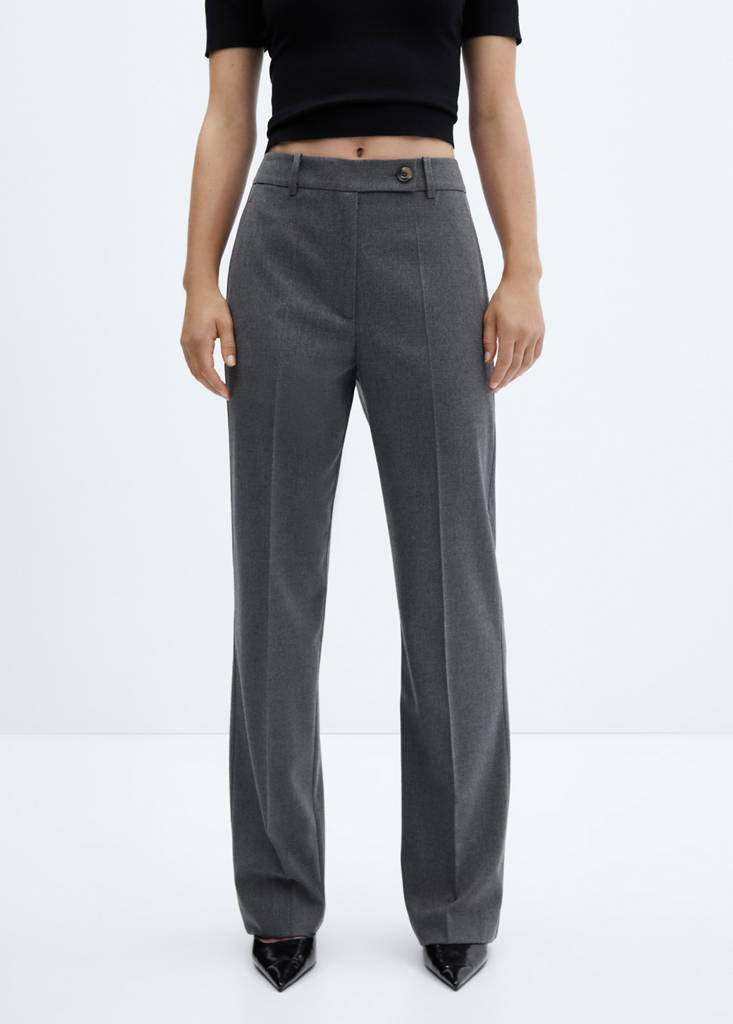 Straight trousers with side buttonCurrent price [€ 39.99 ]€ 39.99Select a colourGreyThe model is wearing size 36 and is 173cm tall.Select your size32343638404244DimensionsAdd to WishlistSee lookFree delivery to storeLong design. Straight design. Low waist. Two side pockets. Zip and button fastening. Belt loops. Available Plus. Office looks. Welt pocket on the backDetails, composition and careStore availability