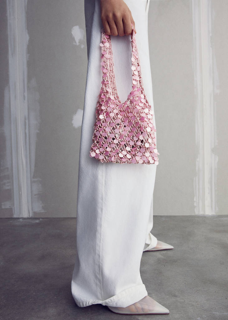 Sequined net bagCurrent price [€ 37.99 ]€ 37.99Select a colourPinkSelect your sizeOne sizeAdd to WishlistSee lookFree delivery to storeMedium. Mesh design. Sequin detail. No Fastening. Party, ceremony and communion collectionMedium, mesh design, sequin detail, unclosed, party and events collection.Details, composition and careStore availability