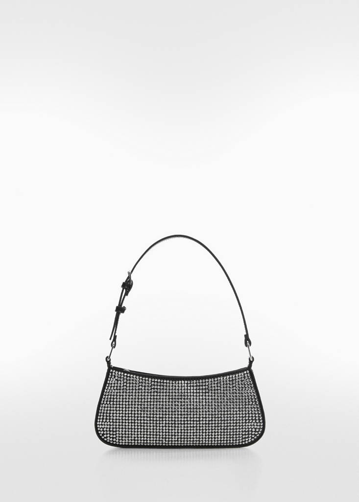 Small, shoulder strap, adjustable strap, zip fastening, rhinestone detail, inner lining, party and events collection.