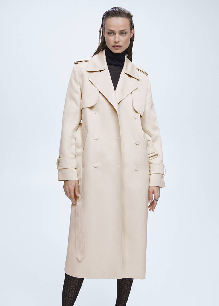 Satin-effect trench coat with belt