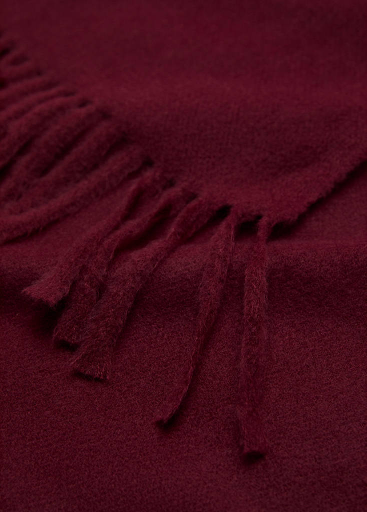 Fringed edge scarfInitial price struck through [€ 19.99 ]€ 19.99Current price [€ 15.99 ]€ 15.99-20%Select a colourBurgundySelect your sizeOne sizeAdd to WishlistSee lookFree delivery to storeSee availability in storeDescriptionKnitted fabric. Plain design. Fringed finish.See detailsShare