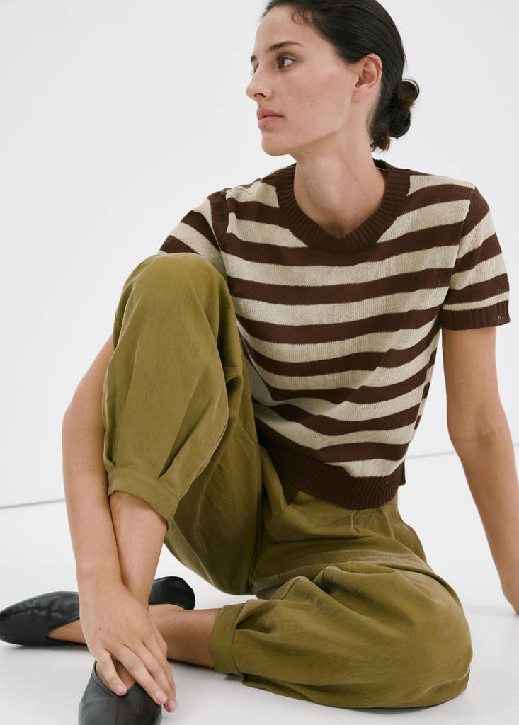 New NowCrop striped sweaterCurrent price [€ 25.99 ]€ 25.99Select a colourChocolateThe model is wearing size S and is 178cm tall.Select your sizeXXSXSSMLXLXXLSize guideAdd to WishlistSee lookFree delivery to storeSee availability in storeDescriptionWide design. Striped print. Round neck. Short sleeves. Strap with elastic band closure.See detailsShare