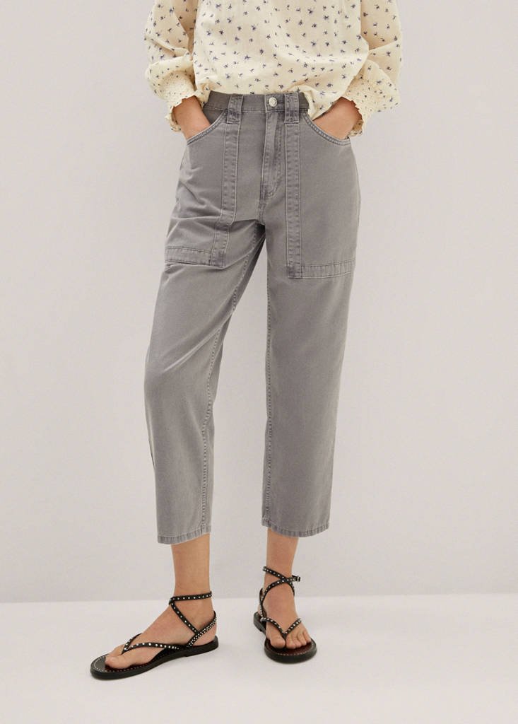 High-waist slouchy jeansCurrent price [€ 37.99 ]€ 37.99Select a colourGreyThe model is wearing size 36 and is 180cm tall.Select your size3234363840424446DimensionsAdd to WishlistSee lookFree delivery to storeDenim style cotton fabric. Straight design. Cropped design. High waist. Loops. Jeans with tie closure . Zip and one button fastening. Inseam 66 cmDetails, composition and careStore availability