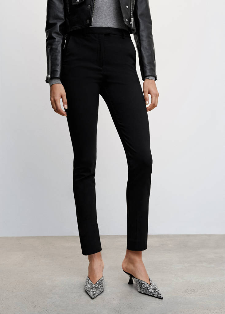Fluid fabric. Skinny fit. Crop design. Mid-rise. Suit style. Two side pockets. Two welt pockets at the back. Belt loops. Inner lining. Zip and button fastening. Available Plus. Cotton blend fabric. Stretch fabric. Concealed button, hook and zip fastening. Skinny trousers with high elasticity and comfort. Sustainable. Side pockets. Long design. Two side welt pockets. Button, hook and zip front closure. Office looks