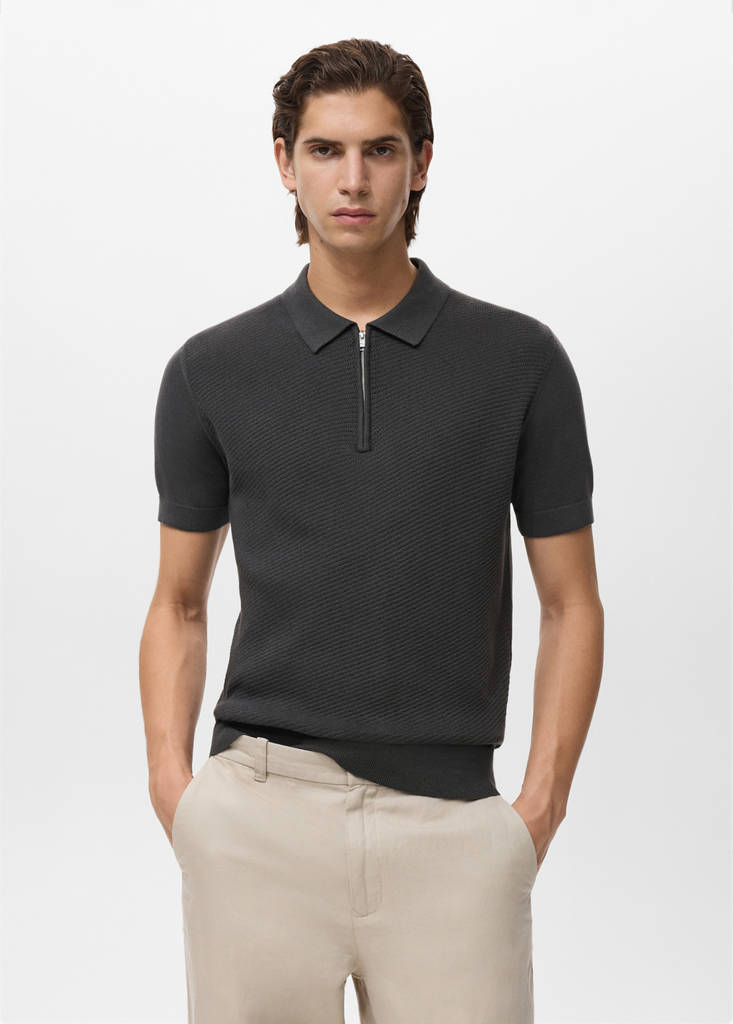 Online ExclusiveOpenwork knitted polo shirt with zipCurrent price [US$ 59.99 ]US$ 59.99Select a colourCharcoalThe model is wearing size M and is 186cm tall.Select your sizeSNot available. I want it!MNot available. I want it!LNot available. I want it!XLNot available. I want it!XXLNot available. I want it!DimensionsNotify meAdd to WishlistSee lookFree delivery to store100% cotton fabric. Straight silhouette. Fine-knit fabric with openwork details. Polo-neck with zip closure. Contrasting knitted sleeve. Ribbed collar, sleeves and hemDetails, composition and careStore availability