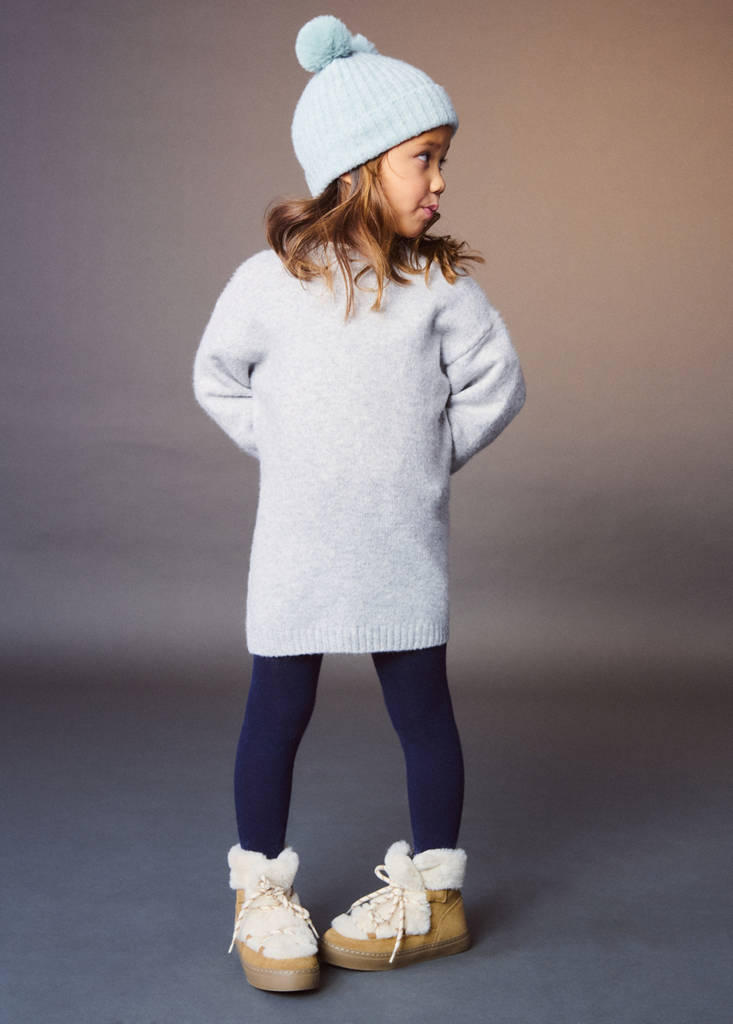 Tissu en grosse maille. Coupe droite. Col rond. Manche longue. Sans fermeture