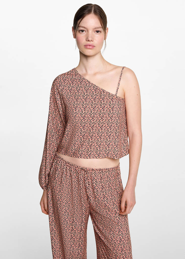 Tissu fluide. Coupe droite. Taille élastiquée. Fermeture par lien ajustable. Motif imprimé. Tissu viscose