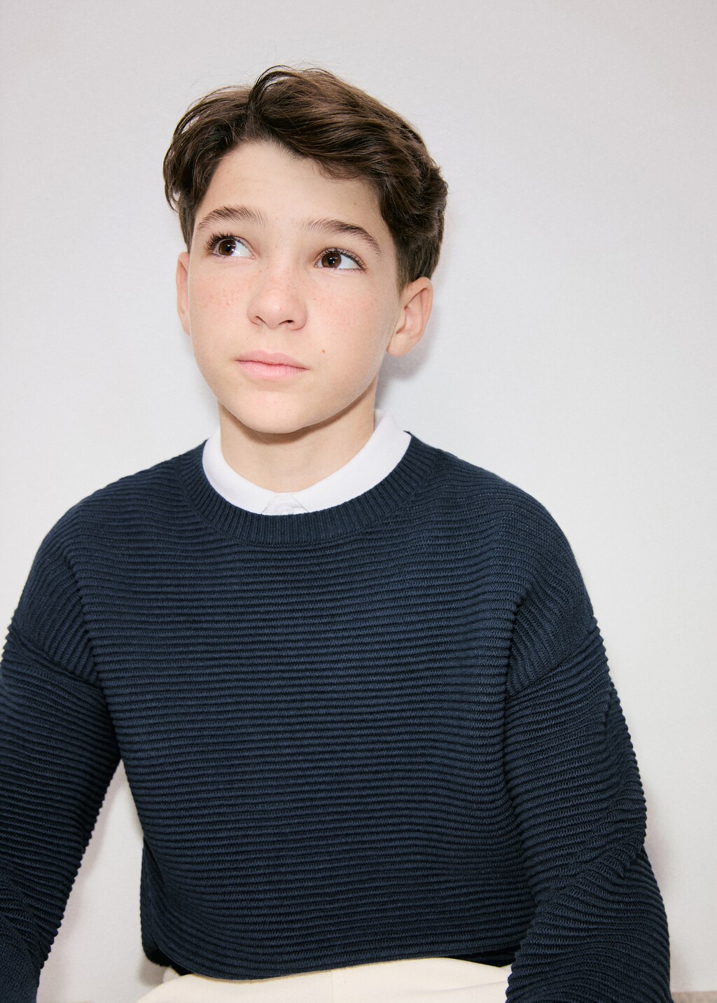 100% cotton fabric. Straight design. Round neck. Long sleeves. Ribbed collar, cuffs and hem.