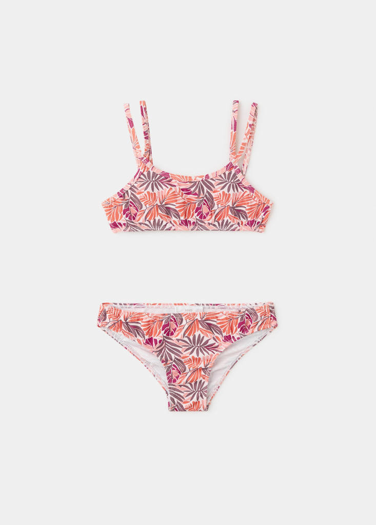 Bikini set. Stretch fabric. Textured fabric. Floral-print design. Straps. Swimwear collection.