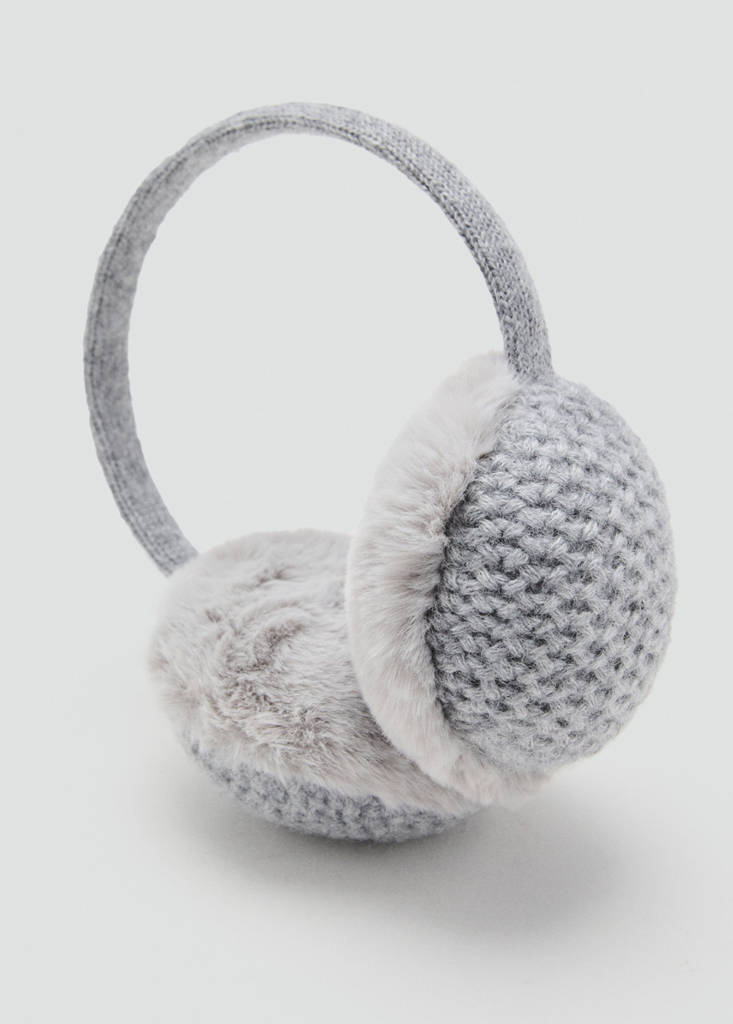 Faux fur fabric. Knitted fabric. Earmuff design. Christmas Collection.