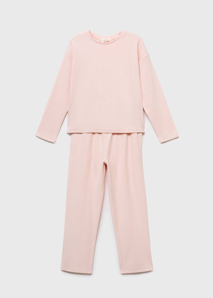 Cotton blend fabric. Straight design. Long design. Round neck. Long sleeves. Elasticated waistband. Two-piece pyjama.