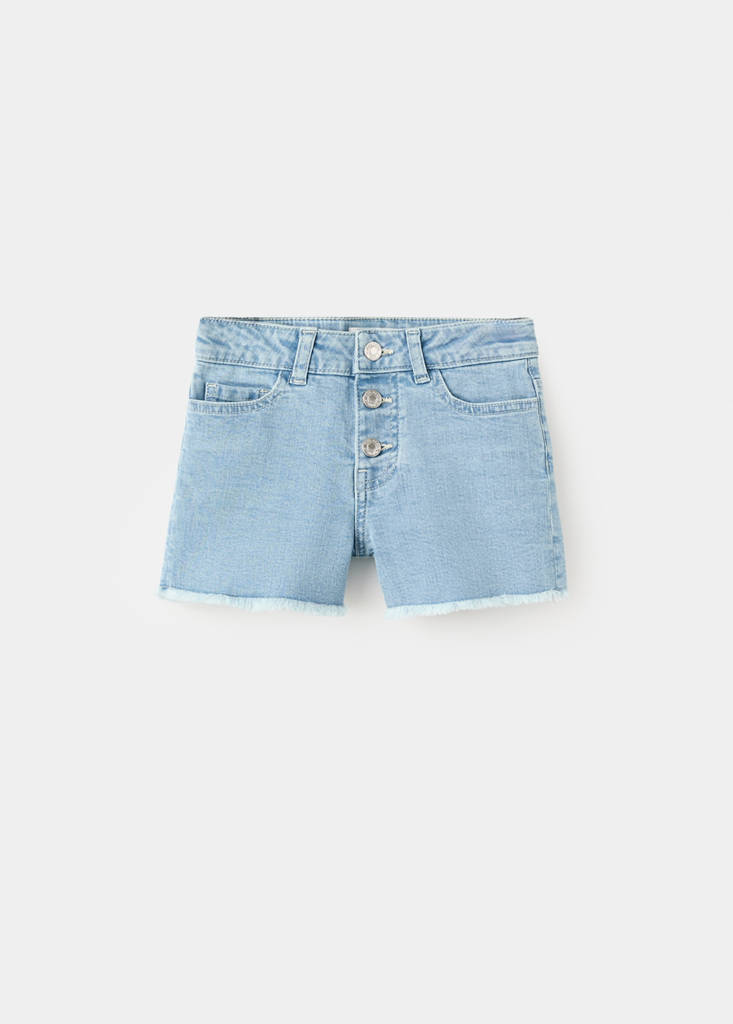 Frayed hem shortsCurrent price [Den 990.00 ]Den 990.00Select a colourLight BlueSelect your size6 (116cm)7 (122cm)8 (128cm)9 (134cm)10 (140cm)11 (146cm)12 (152cm)13-14 years (164cm)Size guideAdd to WishlistSee lookFree delivery to storeSee availability in storeDescriptionDenim-style cotton fabric. Straight design. Short design. Belt loops. Five pockets. Triple button fastening. Frayed finish.See detailsItem qualitiesRecycled cottonAt least 20%This fibre is obtained from pre- and post-consumer textile waste that is transformed into new fabrics.Share