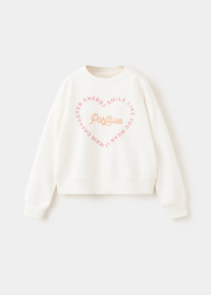 Cotton sweatshirt with textCurrent price [Den 990.00 ]Den 990.00Select a colourOff WhiteSelect your size5-6 years (116cm)7-8 years (128cm)9-10 years (140cm)11-12 years (152cm)13-14 years (164cm)Size guideAdd to WishlistSee lookFree delivery to storeSee availability in storeDescription100% cotton fabric. Straight design. Round neck. Long sleeves. Ribbed collar, cuffs and hem. Text printed on the chest. Valentine Collection.See detailsItem qualitiesRecycled cottonAt least 20%This fibre is obtained from pre- and post-consumer textile waste that is transformed into new fabrics.Share