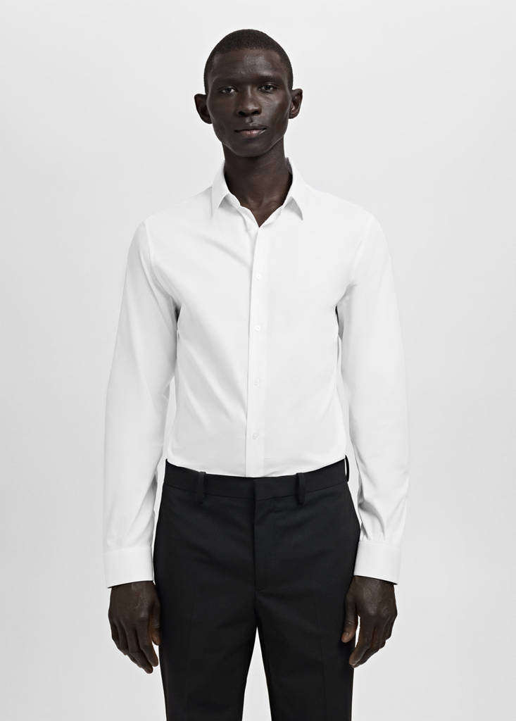 Super slim fit cotton blend formal shirtCurrent price [Den 2,990.00 ]Den 2,990.00Select a colourWhiteThe model is wearing size M and is 185cm tall.Select your sizeXSSMLXLXXLSize guideAdd to WishlistSee lookFree delivery to storeSee availability in storeDescriptionSuper slim fit. Standard Length. Cotton blend fabric. Shirt collar. Long sleeves with buttoned cuffs. Button up. Rounded base.See detailsShare