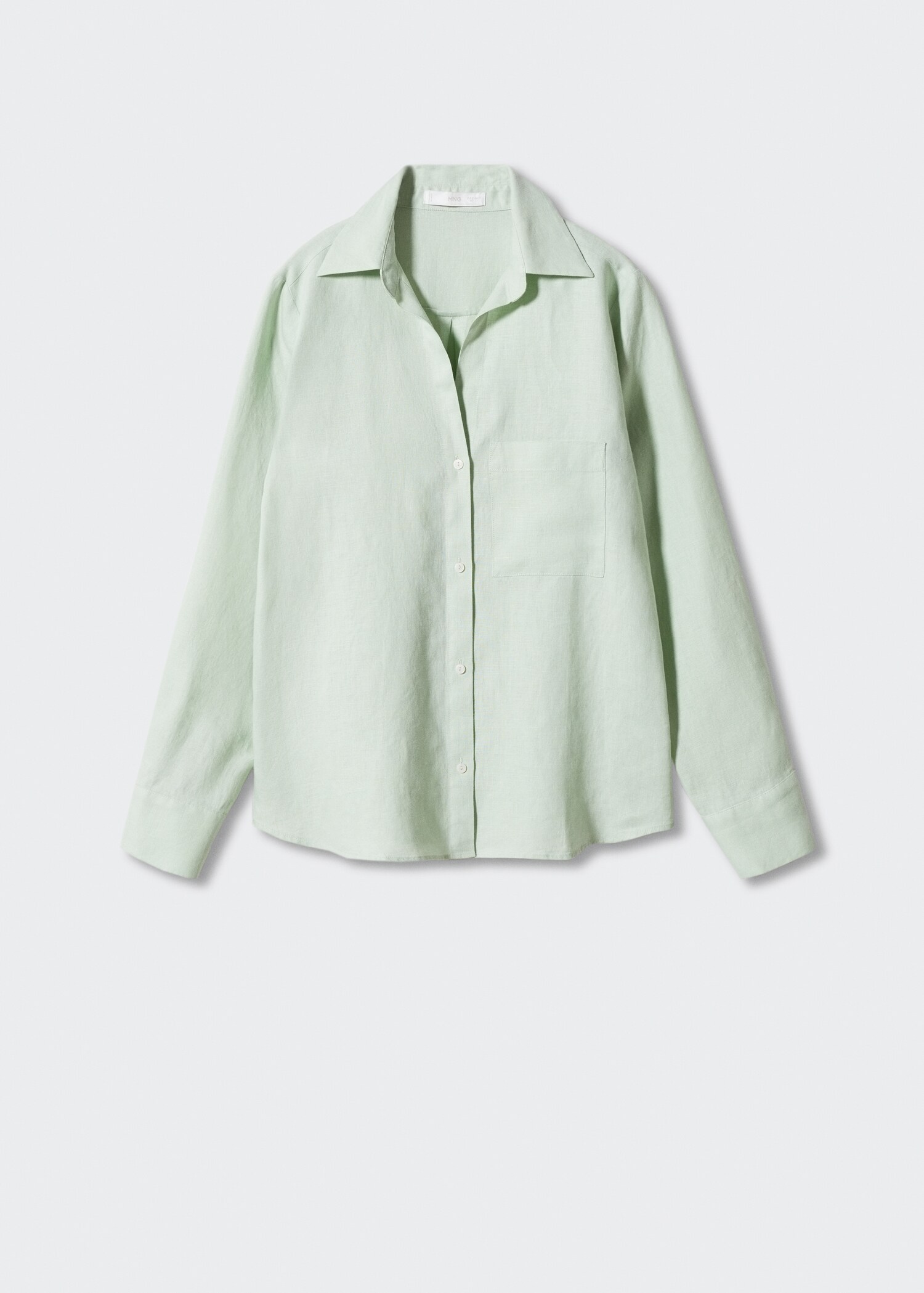 100% linen fabric. Straight design. Shirt-style collar. Long sleeve with buttoned cuffs. Patch pocket on the front. Button fastening on the front section. Rounded hem. The pastel green colour is an online exclusive.