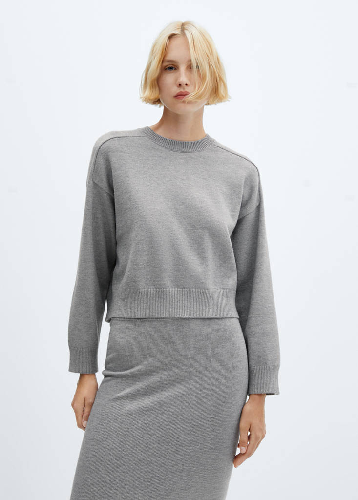Chunky knit fabric. Straight design. Round neck. Long sleeves. Cable knit finish. Decorative stitching on the shoulders. Total look