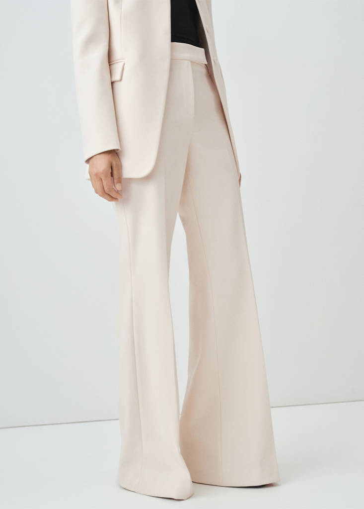 Long design. Flare design. Mid-rise. Belt loops. Concealed button, hook and zip front closure with placket. Inner lining. Total look. The white colour is an online exclusive. Selection Collection