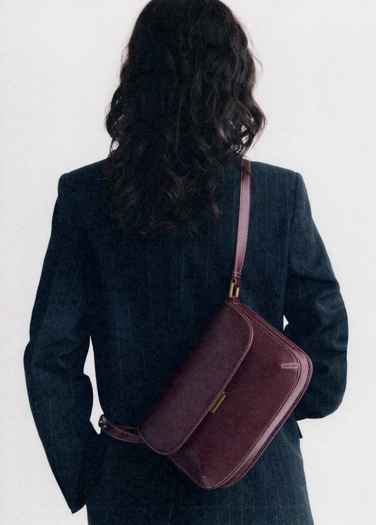 Crossbody bag with flapCurrent price [US$ 89.99 ]US$ 89.99Select a colourBurgundySelect your sizeOne sizeNot available. I want it!Notify meAdd to WishlistSee lookFree delivery to storeFaux leather. Small size. Long adjustable strap. Metal snap closure. Inner lining25.0x19.0x6.0 cm (Length x Height x Width)Details, composition and careStore availability