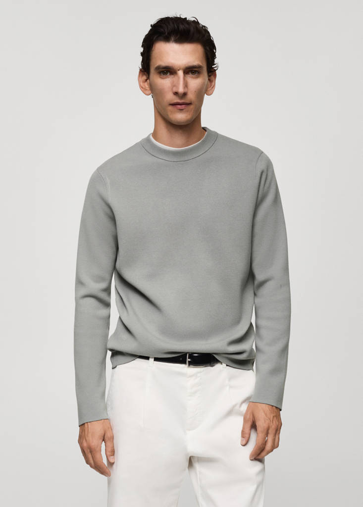 Les couleurs ivoire et gris sont des exclusivités en ligne. Coupe regular. Col rond. Maille moyenne. Manches sans poignet. Bas sans liseré