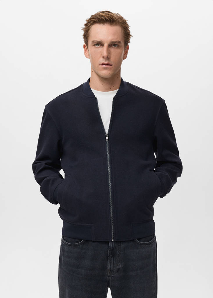 Tissu en mélange de coton. Style bomber. Col bomber. Deux poches latérales. Manches longues avec poignets élastiques. Fermeture Éclair à l’avant. Bas élastique