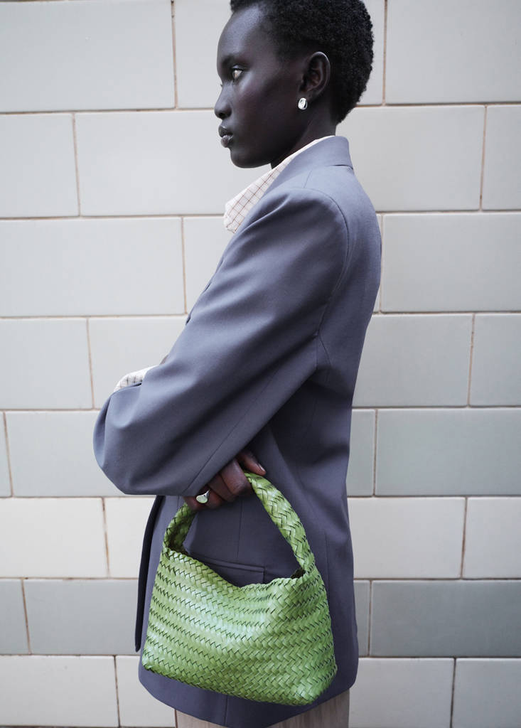 Small size. 100% bovine leather. Handle. Magnetic fastening. Exclusive Online.