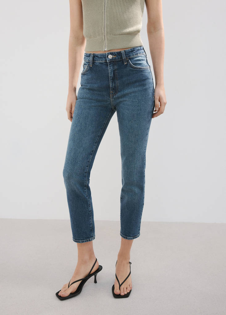Claudia slim-fit cropped jeansCurrent price [MMK 199,900.00 ]MMK 199,900.00Select a colourDark BlueThe model is wearing size 36 and is 179cm tall.Select your size3234363840424446Size guideAdd to WishlistSee lookFree delivery to storeSee availability in storeDescriptionDenim-style cotton fabric. Crop design. Slim fit. High waist. Belt loops. Five pockets. Front zipper and button closure. Inside length 75 cm.See detailsShare