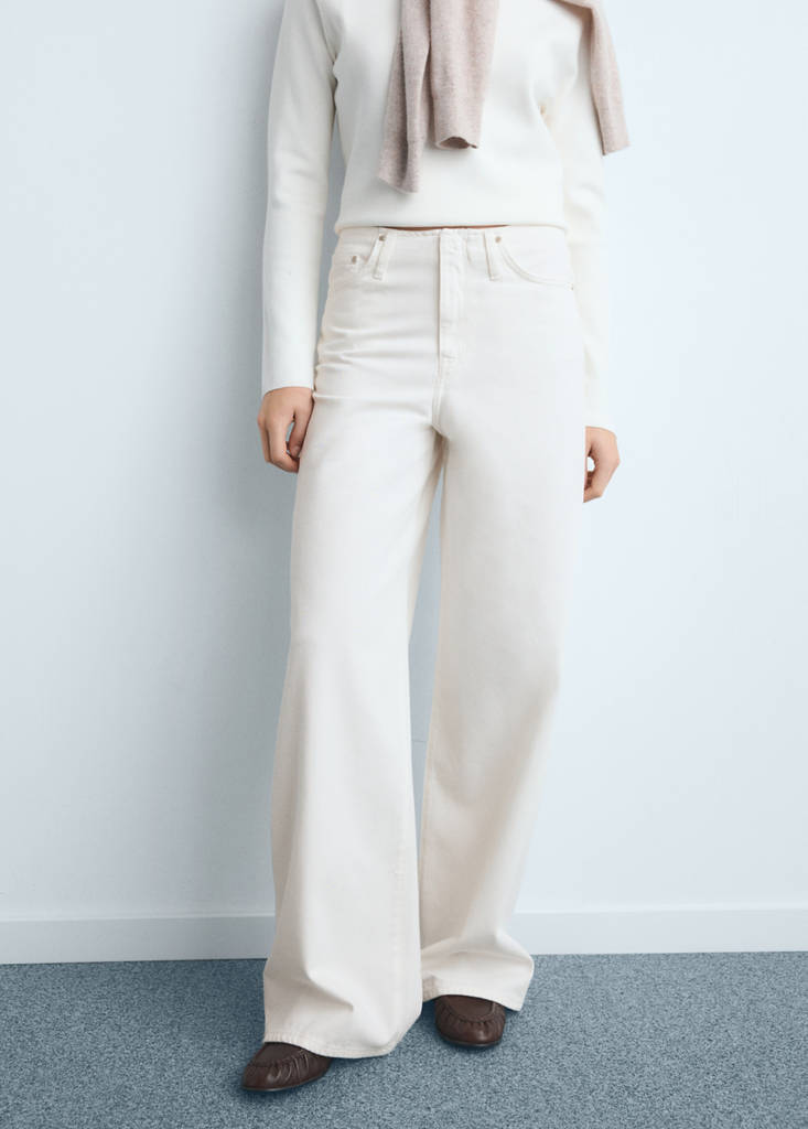 Low-rise wideleg jeansCurrent price [MMK 279,900.00 ]MMK 279,900.00Select a colourOff WhiteThe model is wearing size 36 and is 180cm tall.Select your size3234363840424446Size guideAdd to WishlistSee lookFree delivery to storeSee availability in storeDescriptionDenim-style cotton fabric. Long design. Wide-leg design. Low waist. Belt loops. Five pockets. Concealed button, hook and zip fastening. Inner length 81,5 cm.See detailsShare