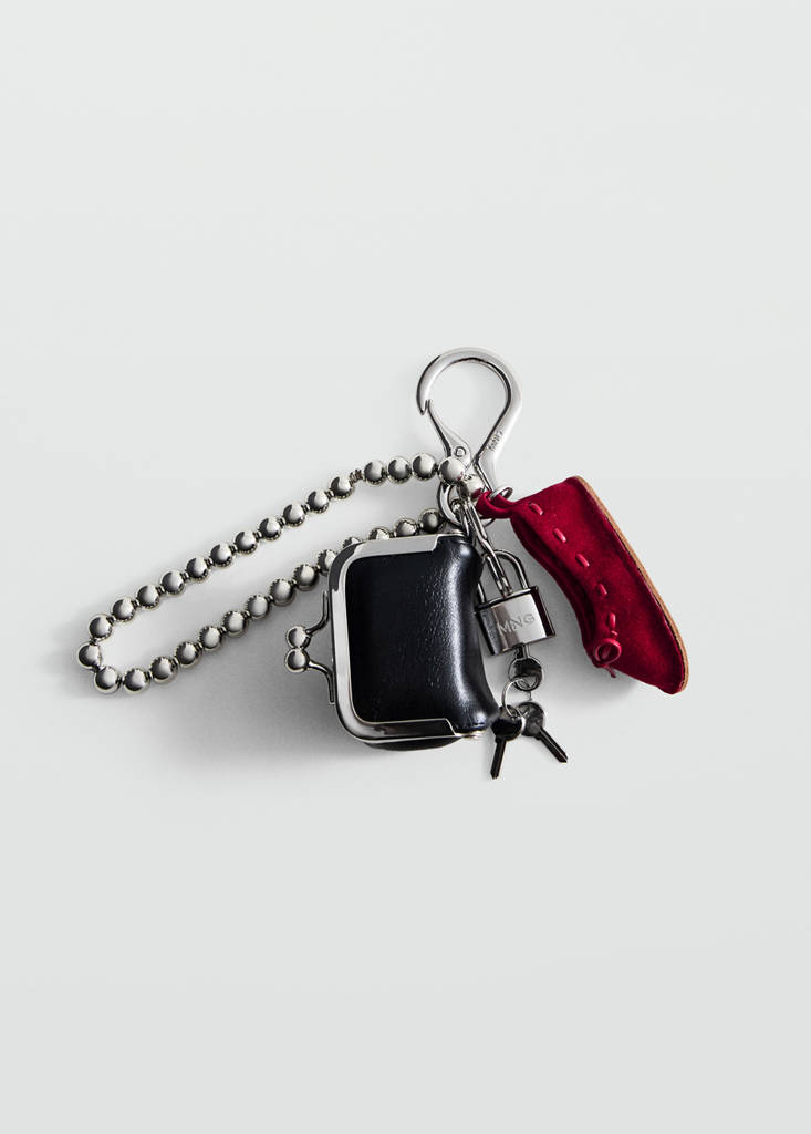 Chain design. Carabiner applique. Multi-charms.
