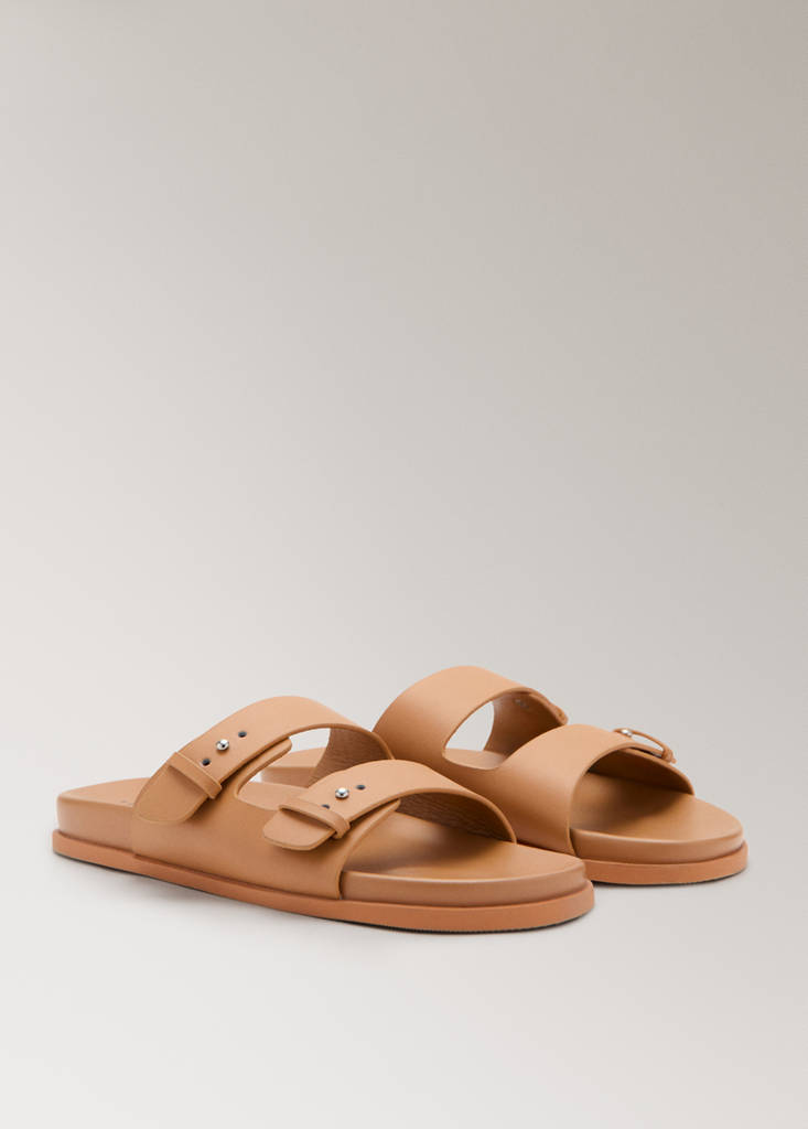 Double buckle leather sandalsCurrent price [MMK 349,900.00 ]MMK 349,900.00Select a colourOrangeSelect your size363738394041Size guideAdd to WishlistSee lookFree delivery to storeSee availability in storeDescription100% bovine leather. Slippers. Straps design. Straps with buckle closure. Timeless design. Perfect for your days at home. Available in different colours.See detailsShare