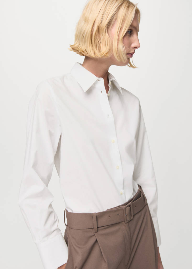 Crafted from a cotton and lyocell-blend poplin fabric, this shirt features a straight design with a shirt collar and long sleeves with buttoned cuffs. Available in Plus Size