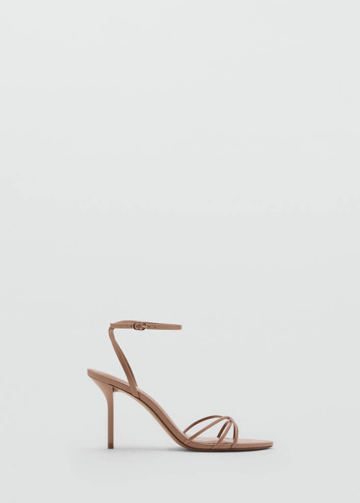 Crossed strap design. Open toe. Stiletto heel. 9 cm heel. Ankle strap closure with metal buckle.
