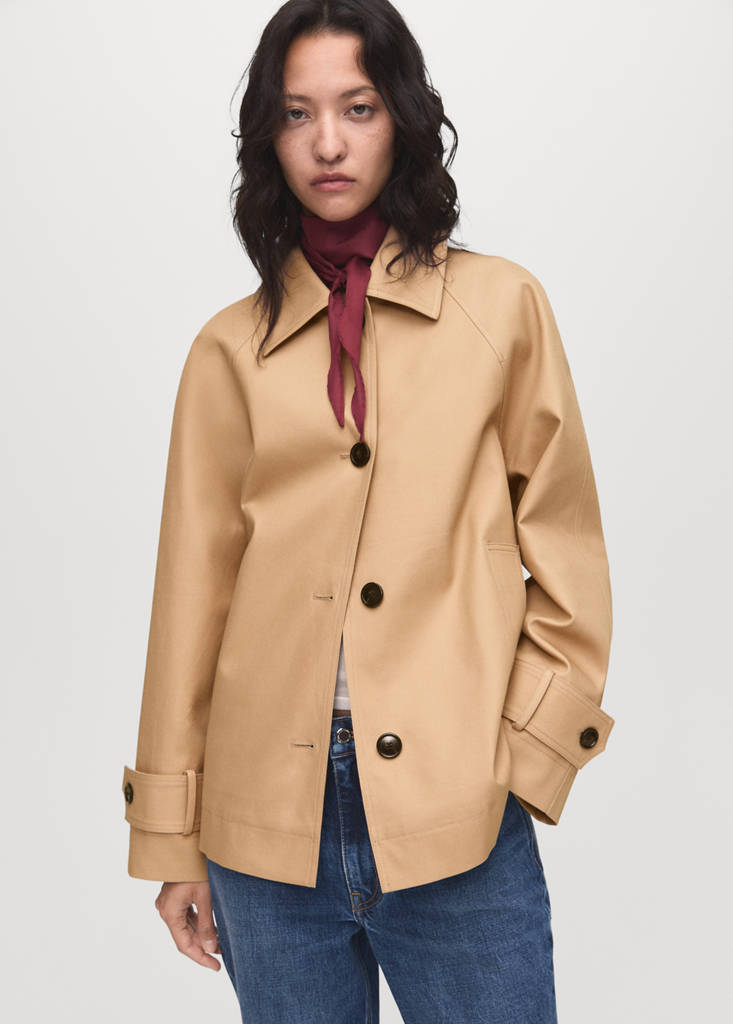 Crafted from 100% cotton fabric, this garment features an oversized design with a shirt collar. It has long sleeves with epaulettes, two side pockets, and a front button fastening