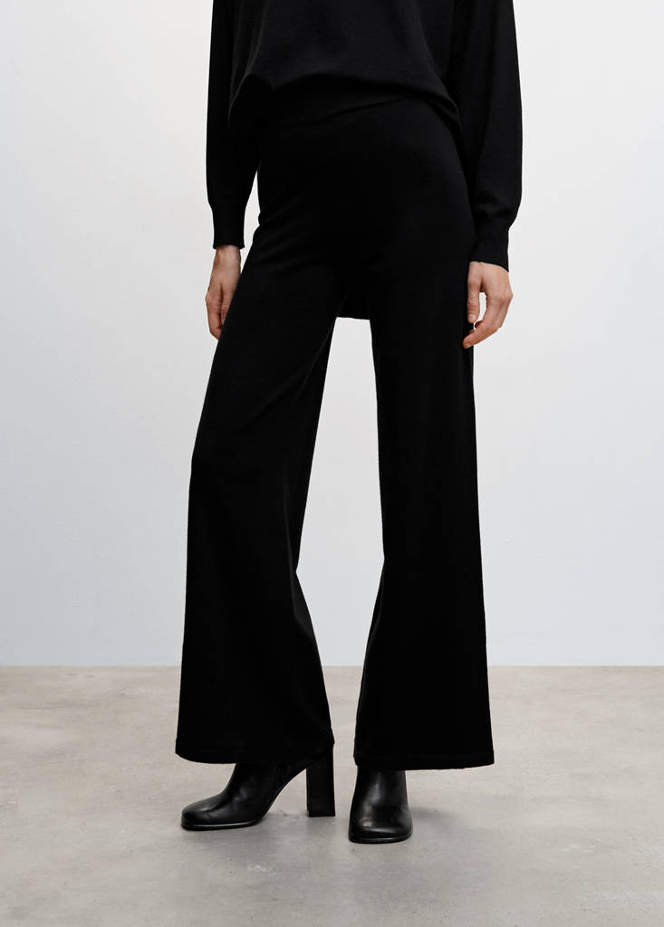 Knitted wideleg trousersCurrent price [MMK 139,900.00 ]MMK 139,900.00Select a colourBlackSelect your sizeXXSXSSMLXLXXLDimensionsAdd to WishlistSee lookFree delivery to storeFine knit fabric. Flowy fabric. Wide-leg design. Long design. Elastic waist. Co-ord. Plus Size AvailableDetails, composition and careStore availability