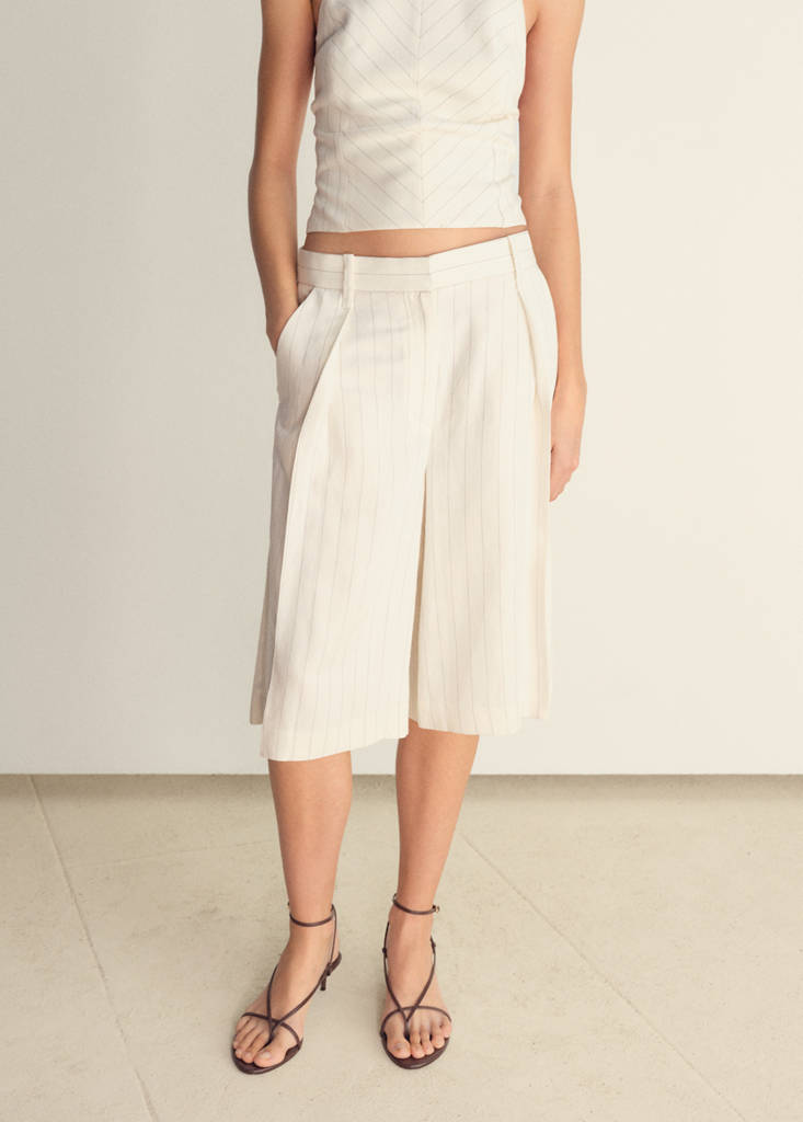 Striped linen-blend bermuda shorts