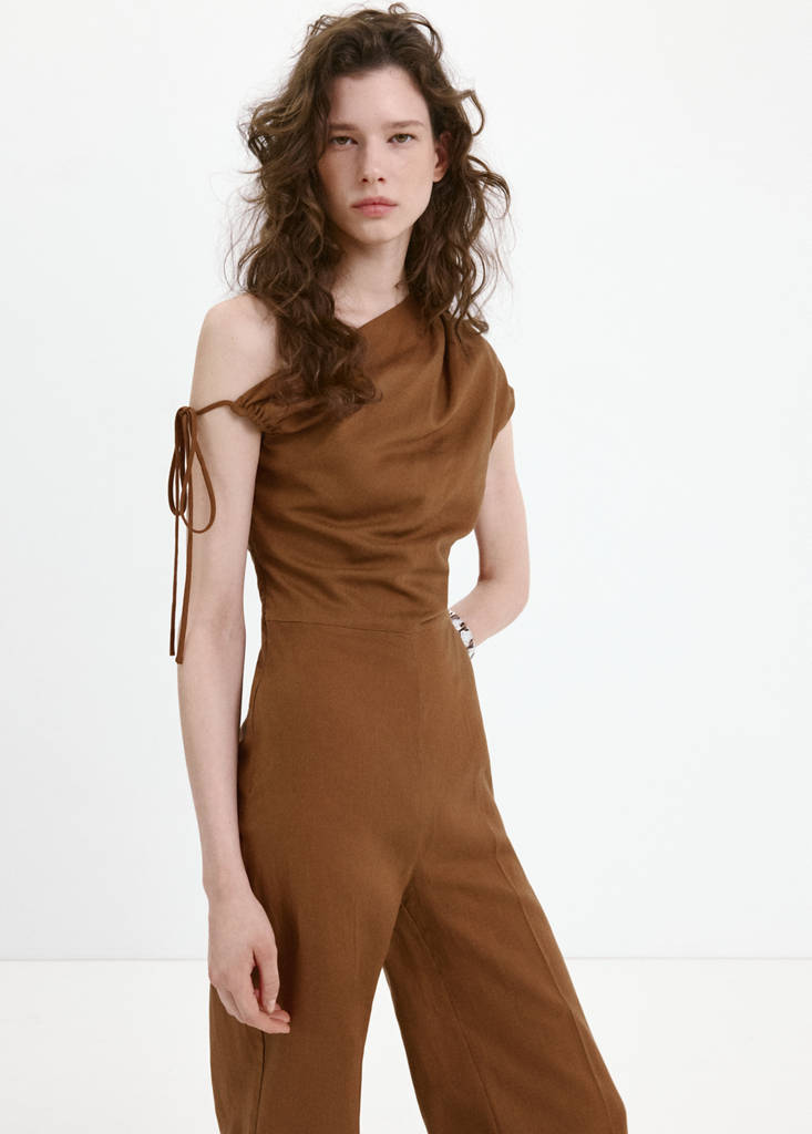 Linen and lyocell blend fabric. Straight design. Long design. Asymmetric design. Sleeveless. Side zip closure