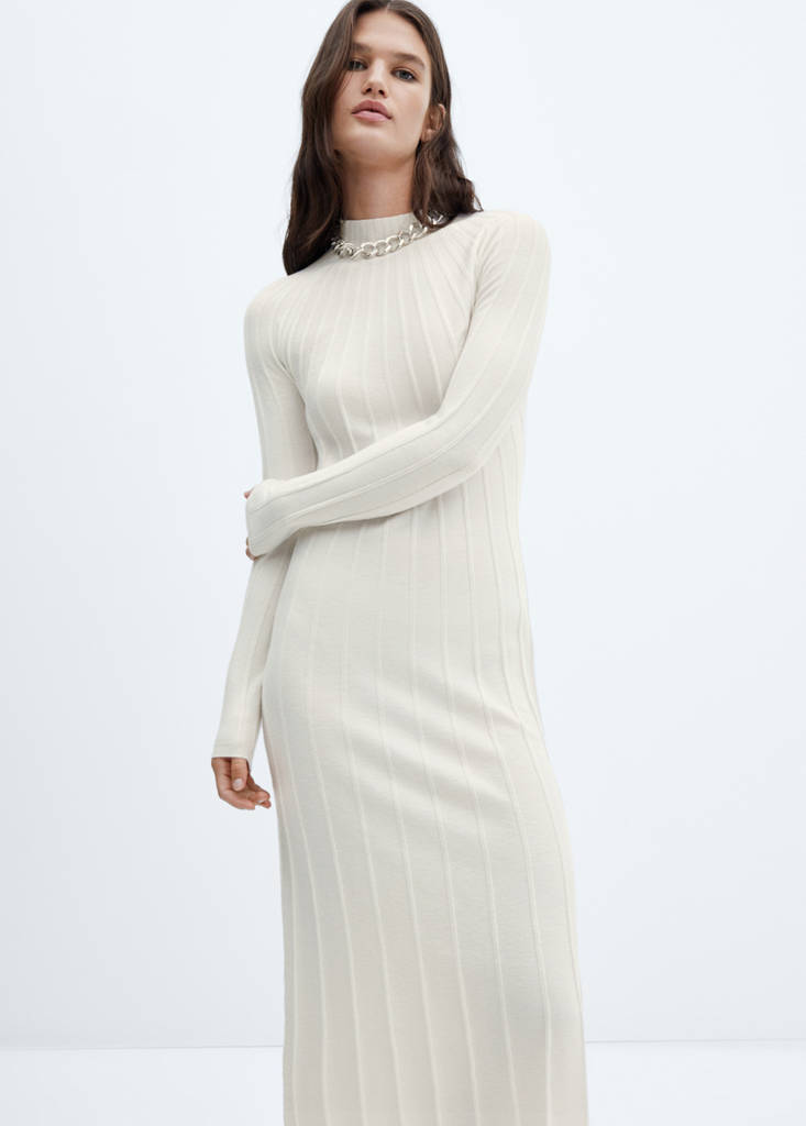 Perkins-neck ribbed dress