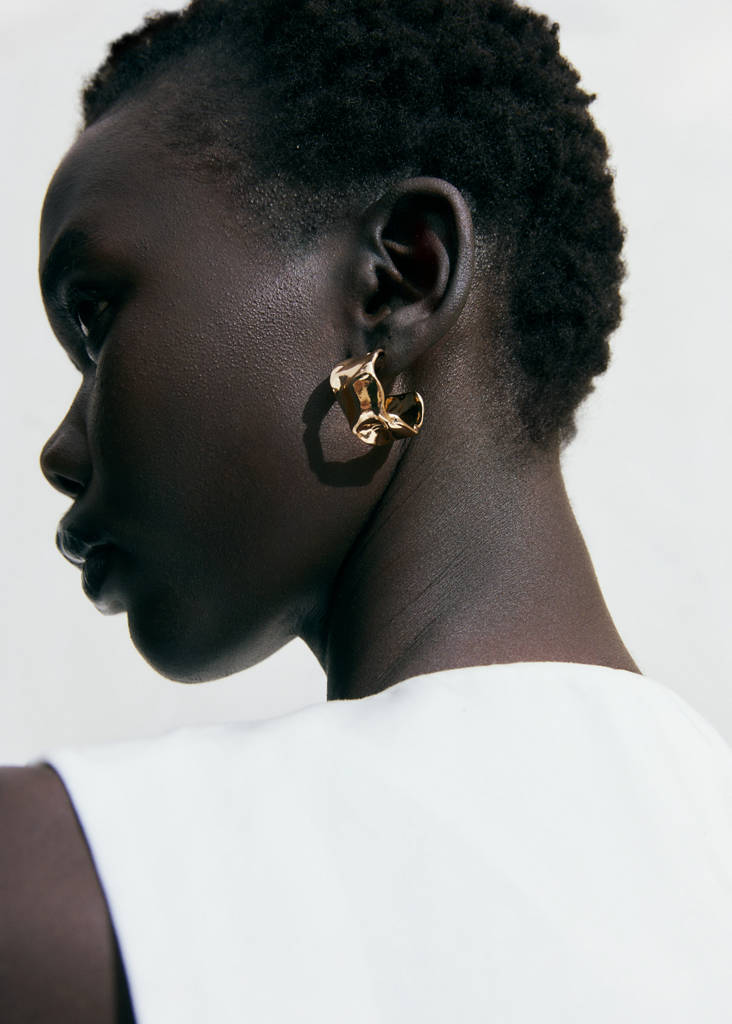 Short design. Wide hoop design. Irregular design. Metal snap closure. The diameter of the ring is 2.4 cm