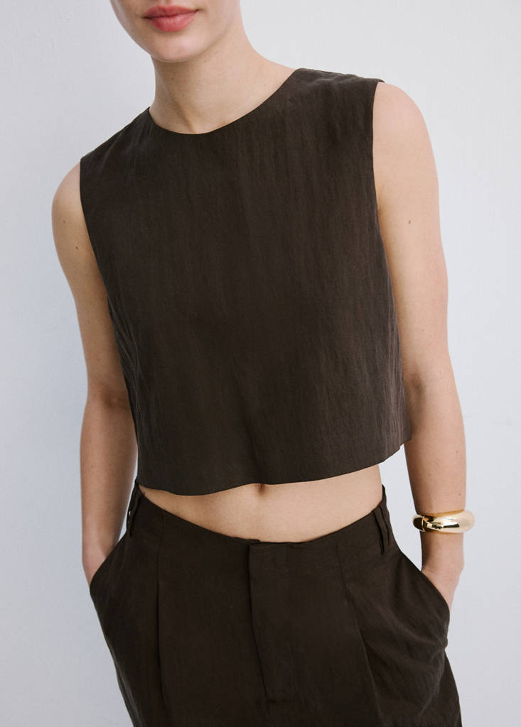 Lyocell fabric. Crop design. Round neck. Sleeveless. Button fastening on the back section