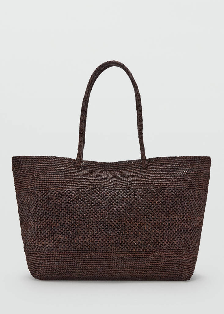 Coupe maxi. Modèle de sac cabas. Tissu en fibre naturelle. Double anse. Deux bandoulières. Fermeture à bouton magnétique