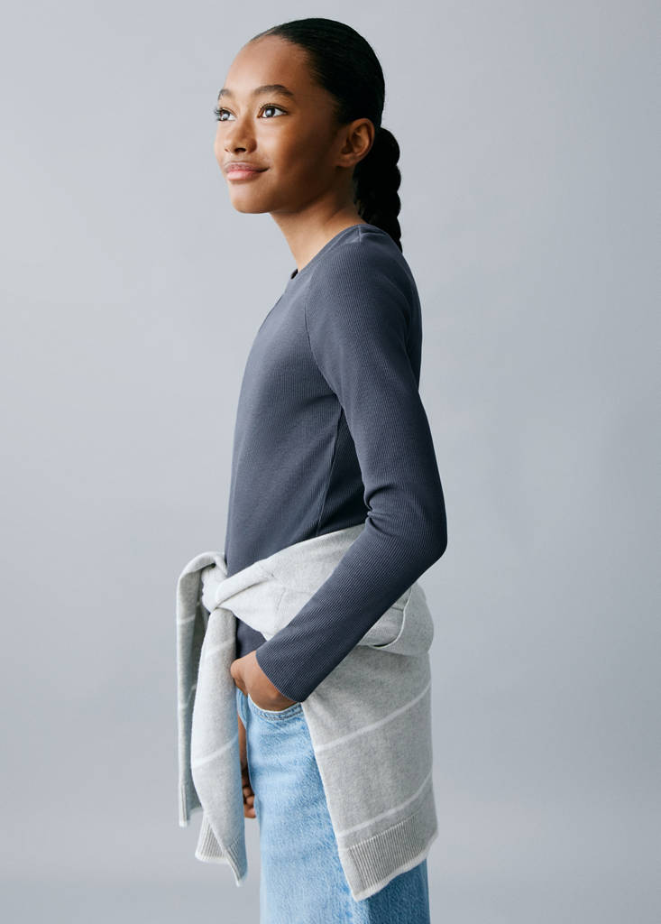 T-shirt côtelé manches longuesPrix actuel [12,99 € ]12,99 €Choisissez une couleurBleu pétroleChoisissez votre taille5-6 ans (116cm)Non disponible. Je le veux !7-8 ans (128cm)Non disponible. Je le veux !9-10 ans (140cm)Non disponible. Je le veux !11-12 ans (152cm)Non disponible. Je le veux !13-14 ans (164cm)Non disponible. Je le veux !MesuresAlertez-moi. Ajouter aux FavorisVoir le lookLivraison gratuite en boutiqueTissu de coton. Tissu élastique. Design côtelé. Coupe droite. Design uni. Col rond. Manche longueDétails, composition et entretienDisponibilité en boutique