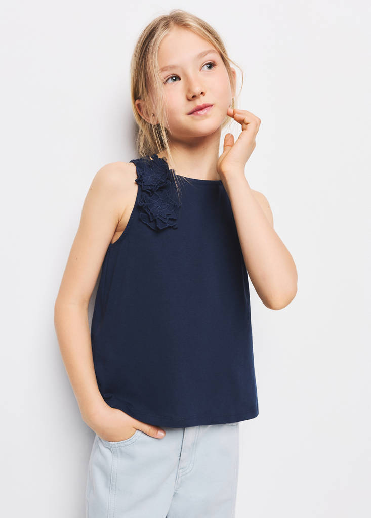 Top à fleurs en reliefPrix actuel [17,99 € ]17,99 €Choisissez une couleurBleu marineChoisissez votre taille5-6 ans (116cm)7-8 ans (128cm)9-10 ans (140cm)11-12 ans (152cm)13-14 ans (164cm)MesuresAjouterAjouter aux favorisVoir le lookLivraison gratuite en boutiqueTissu 100 % coton. Col rond. Sans manches. Détail floral en relief. Fermeture en goutte à l'arrièreDétails, composition et entretienDisponibilité en boutique