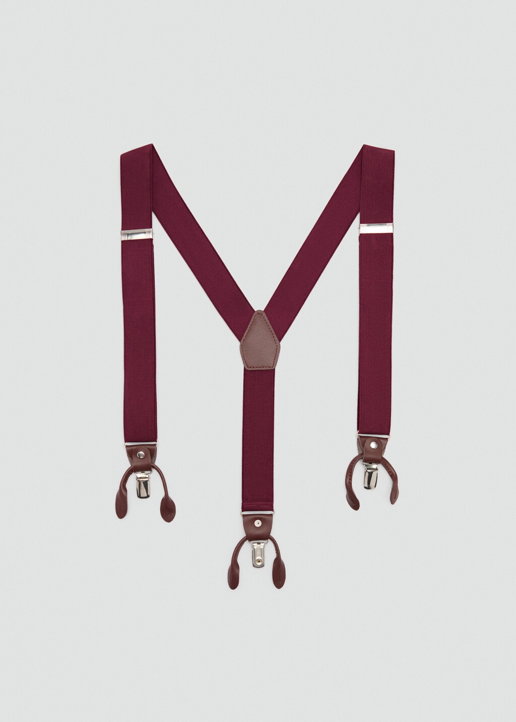 Bretelles élastiques ajustables. Détails en cuir. Attaches avec pince métallique et pattes pour boutons.