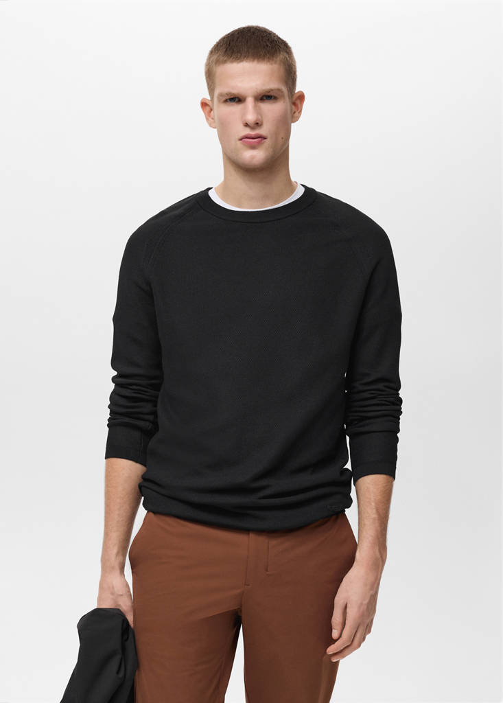 Collection Performance. Comfort Stretch : Tissu élastique pour plus de confort. Coolmax® est un tissu spécial qui aide à évacuer l’humidité de la peau, qui dans les climats froids garde le corps sec et chaud, et dans les climats chauds, il se distingue par sa légèreté et sa fraîcheur. Thermorégulateur : Ce tissu offre une respirabilité optimale pour maintenir votre température stable. Coupe regular. Tissu structuré. Tissu en mélange de coton. Col rond. Manches longues avec poignets élastiques. Ourlet droit