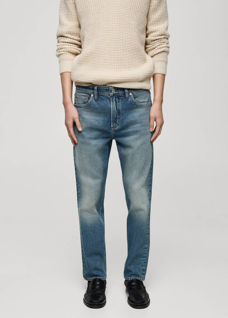Tapered-fit : coupe large en haut qui se resserre depuis le genou jusqu’à la cheville. Tissu en coton. Délavé clair effet usé. Poche gousset. Fermeture éclair et bouton. Passants pour ceinture. Deux poches plaquées à l'arrière