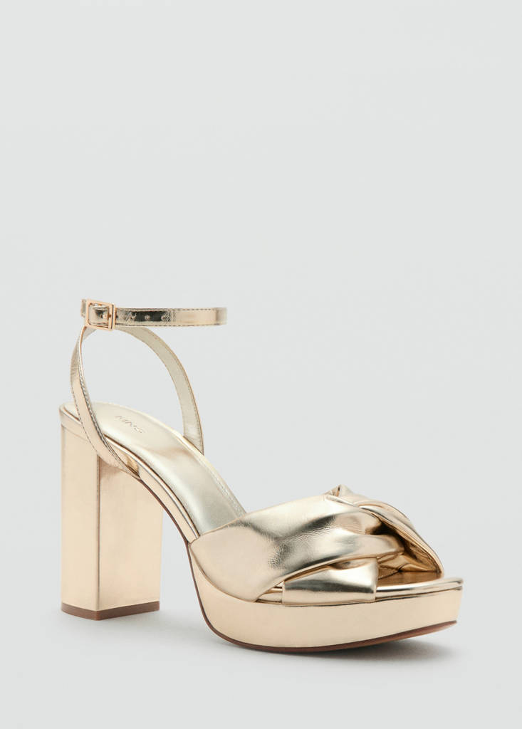 Effet métallisé. Bout rond. Détail nœud. Fermeture à boucle à la cheville. Talon de 10,5 cm