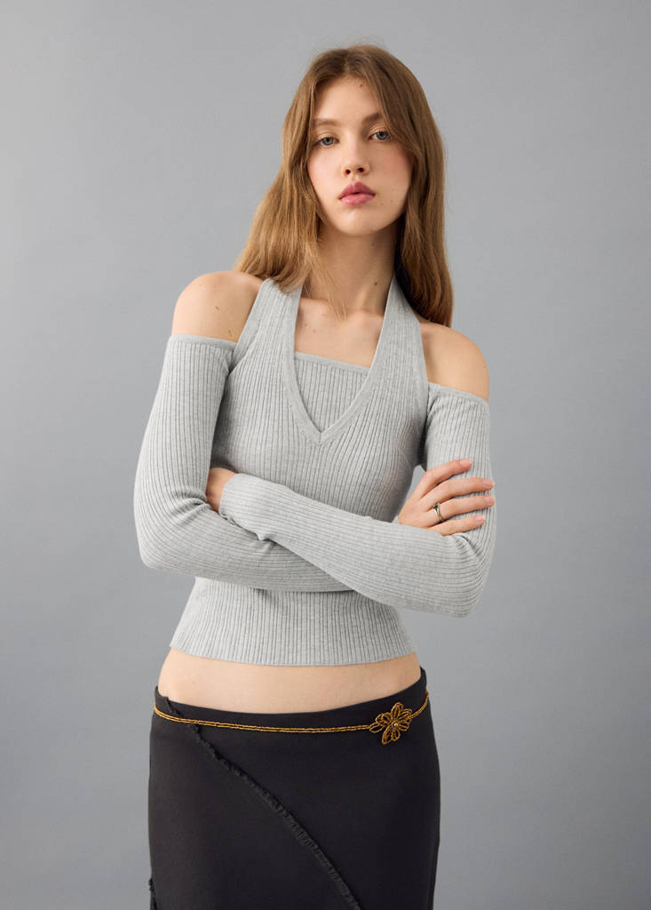 Top halter à manches longuesPrix initial barré [35,99 € ]35,99 €Prix actuel [25,99 € ]25,99 €-28 %Choisissez une couleurGris chiné clairChangement de tailles - Consultez le guide des taillesChoisissez votre tailleXXSXSSMLDernières unités !AjouterAjouter aux favorisVoir le lookLivraison gratuite en boutiqueTissu en maille. Tissu côtelé. Col halter. Manche longue. Épaules découvertesDétails, composition et entretienDisponibilité en boutique